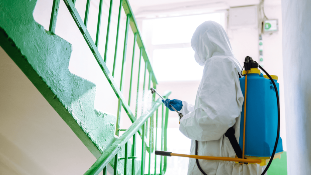 Dezynfekcja powierzchni wspólnych: Regularne dezynfekcja klatek schodowych, korytarzy, wind, piwnic, pralni, siłowni i innych pomieszczeń wspólnych, aby zapobiegać rozprzestrzenianiu się bakterii, wirusów i grzybów.